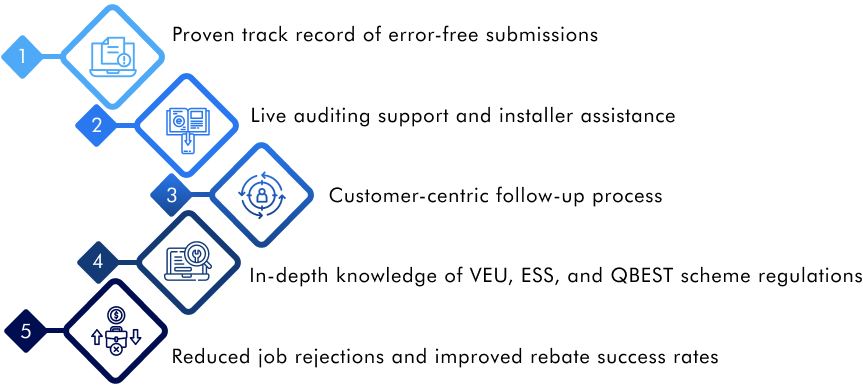 Our expert team ensures your submissions are approval-ready so you don’t have to deal with delays or rework. We manage the full lifecycle, from pre-audit coordination and live installation checks to gathering evidence for final submissions